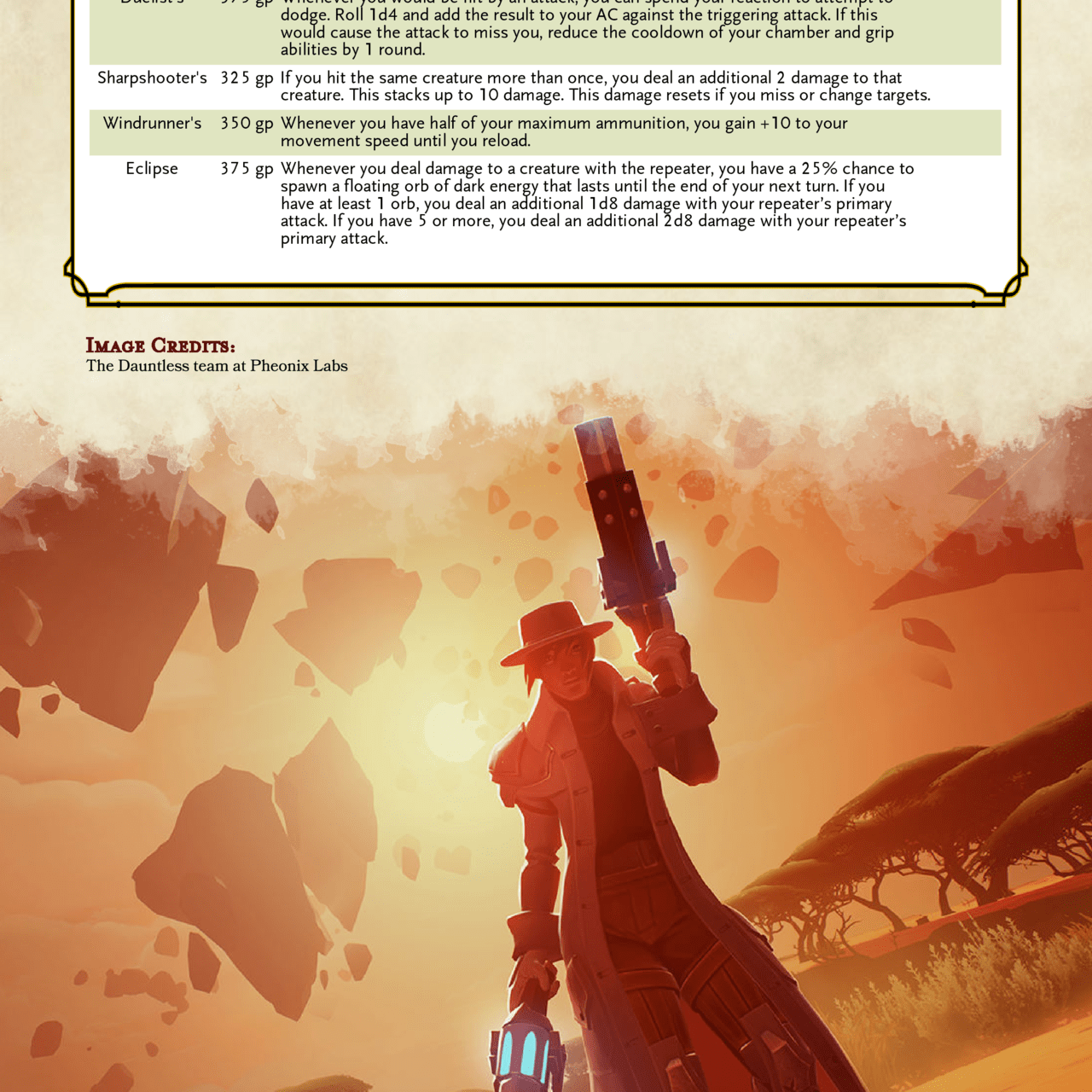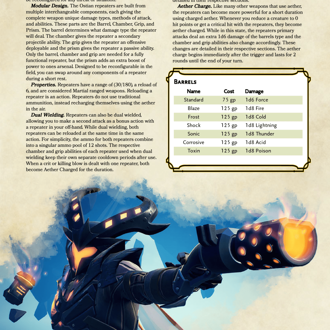 They’re finally done! And with them, I’ve now done all of the aether equipment from Dauntless. I’ve wanted to do these since before they were released into the actual game. And now that they are out, they are a blast to use. Honestly I think they’re a good fit for something like D&D since they’re sort of their own kind of magic, or at least they could be spun as some kind of magical weapon. Hope you guys like them!