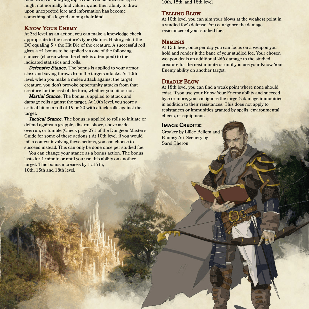 New fighter subclass for you guys today! A pathfinder conversion, this was fun to work on but also a pain. The original was a little wonky and not all of its mechanics seemed…sound, but that’s never stopped me before.