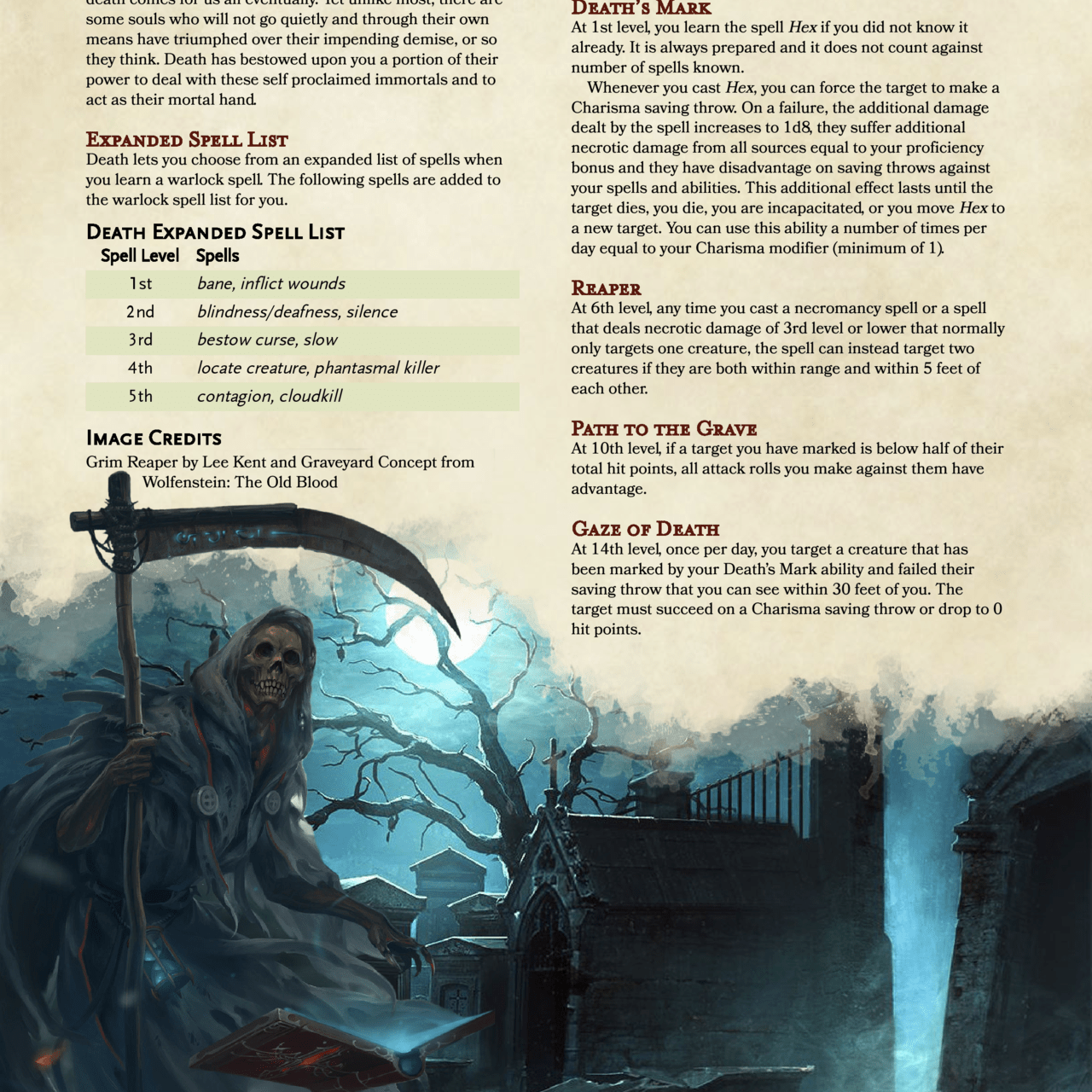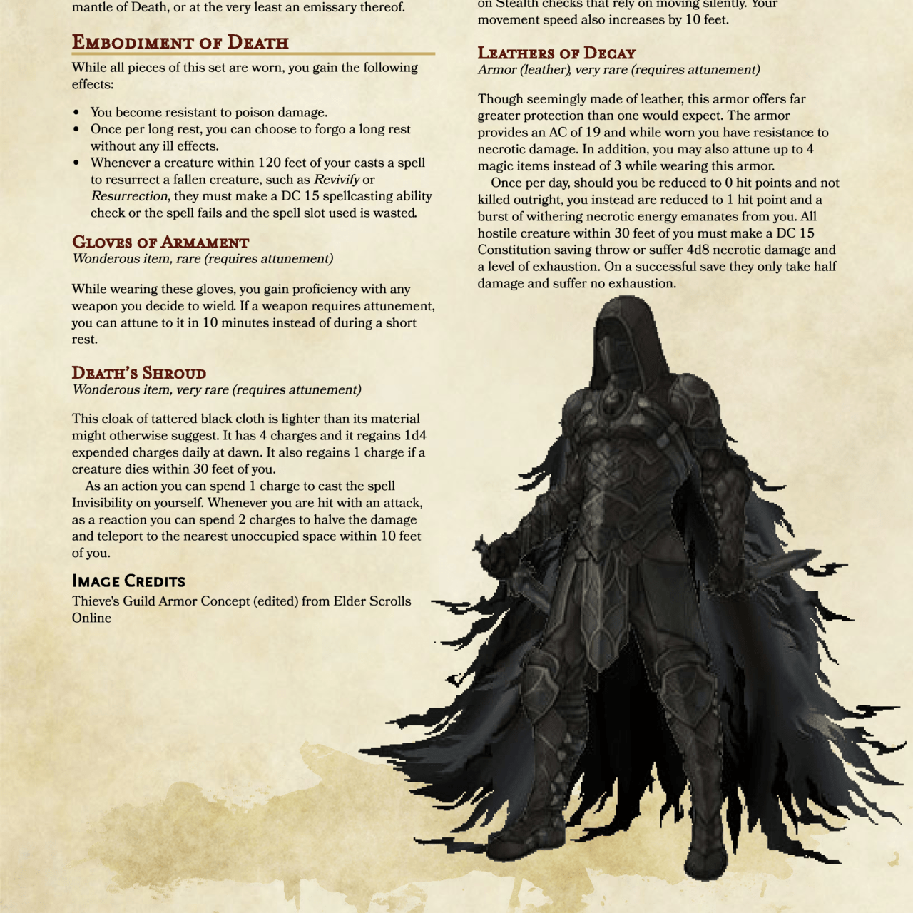 Hey all! Today, I’ve got not one but TWO Death themed pieces for you. These were a request for someone for an NPC in their campaign that acts as an emissary of Death. Now, the original version of Death’s Arsenal was built to be rather overpowered but this one has been toned down considerably for regular play. If you guys want to see the original version, just let me know and I’ll post it.