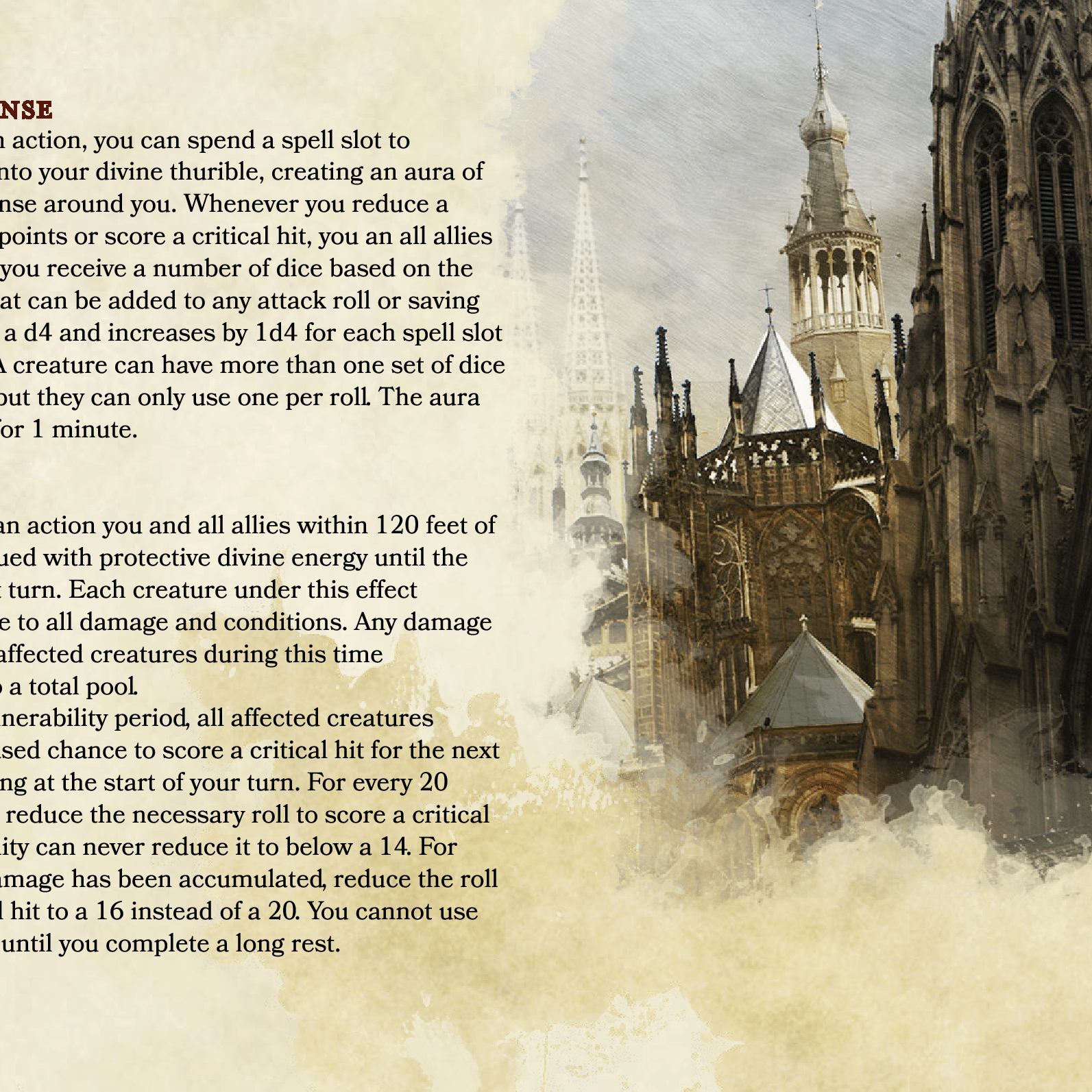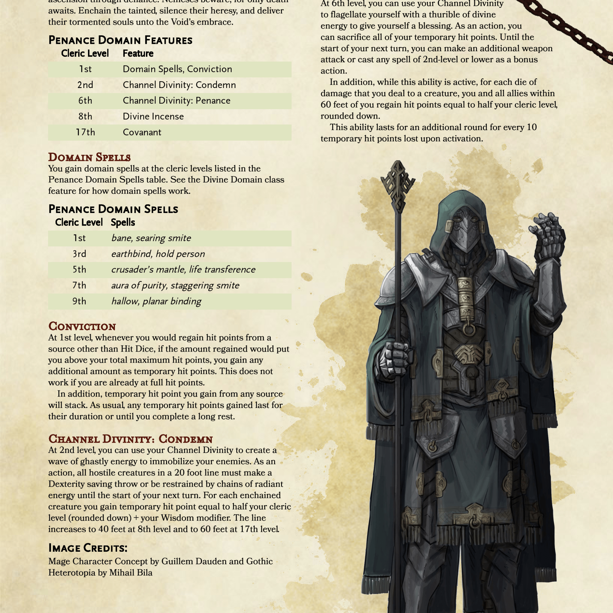 At last, the dark priest Harrow makes his appearance! That’s right, back to the Warframe conversions, and a cleric domain at that. A while back I realized I had only ever done a single domain so I figured I’d combined it with another Warframe post. Had a lot of fun with this one, converting his abilities were quite the challenge but I think I got it! Hope y’all have fun with it.