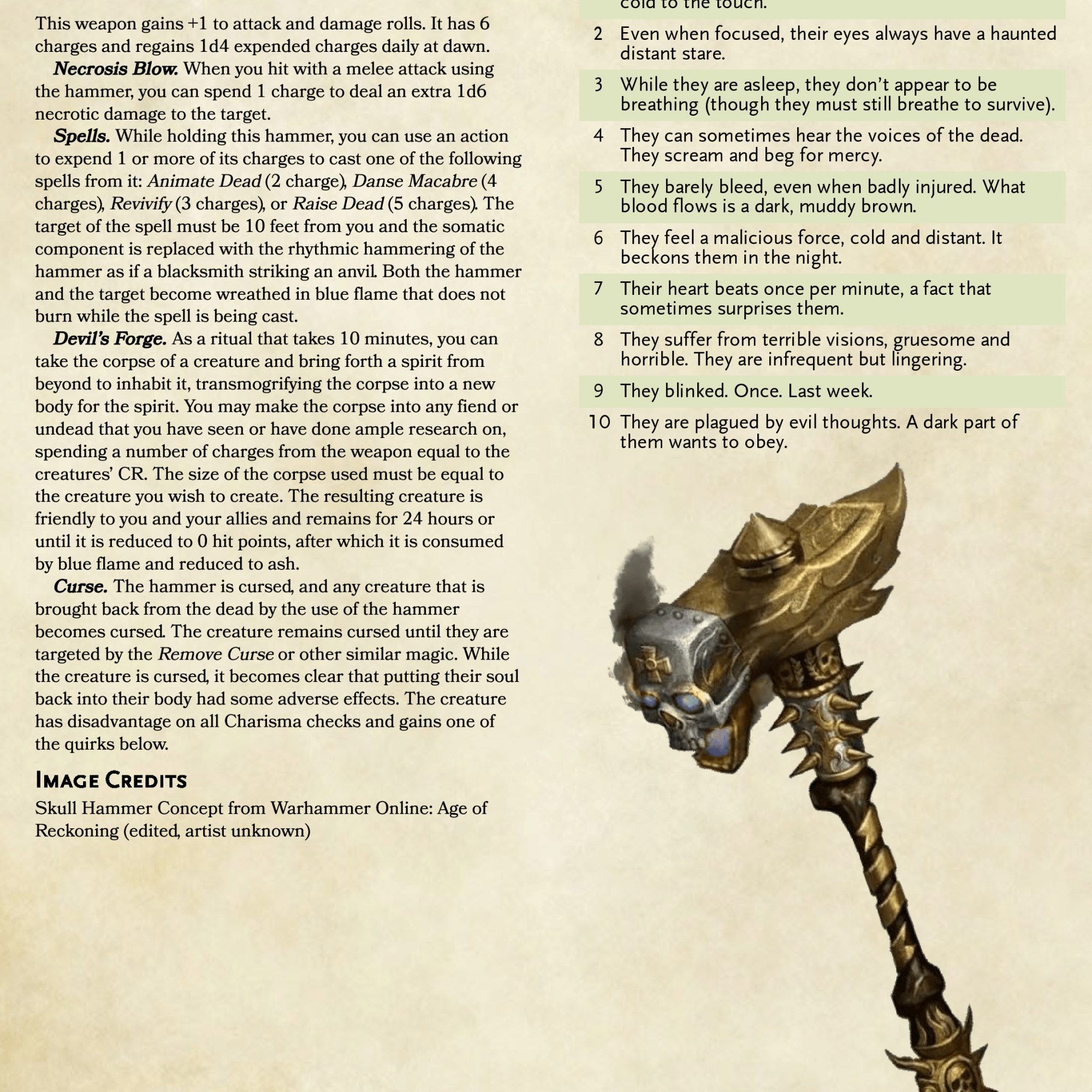 Well this one went from start to finish right quick! A magical weapon with the power to reanimate the dead and create monstrosities, I based it on the Devil Forgemasters from the Netflix Castlevania series (which is fucking awesome by the way). The actual capabilities of the Forgemasters aren’t exactly explained in any great detail but I think I got the essence of it. Regardless, I wanted to do something like this for a while and had a lot of fun doing it.