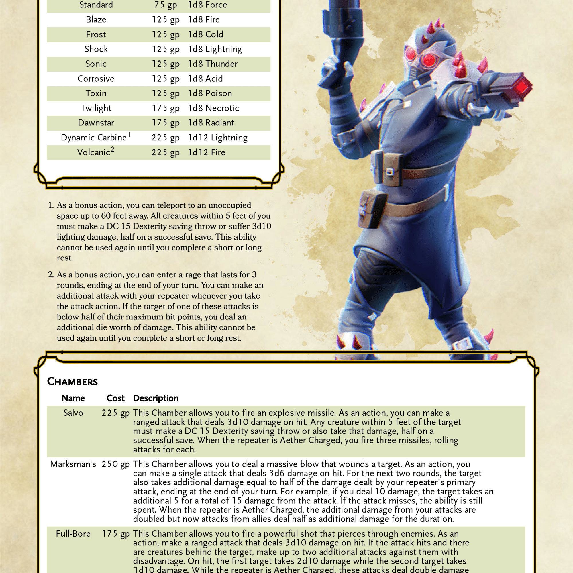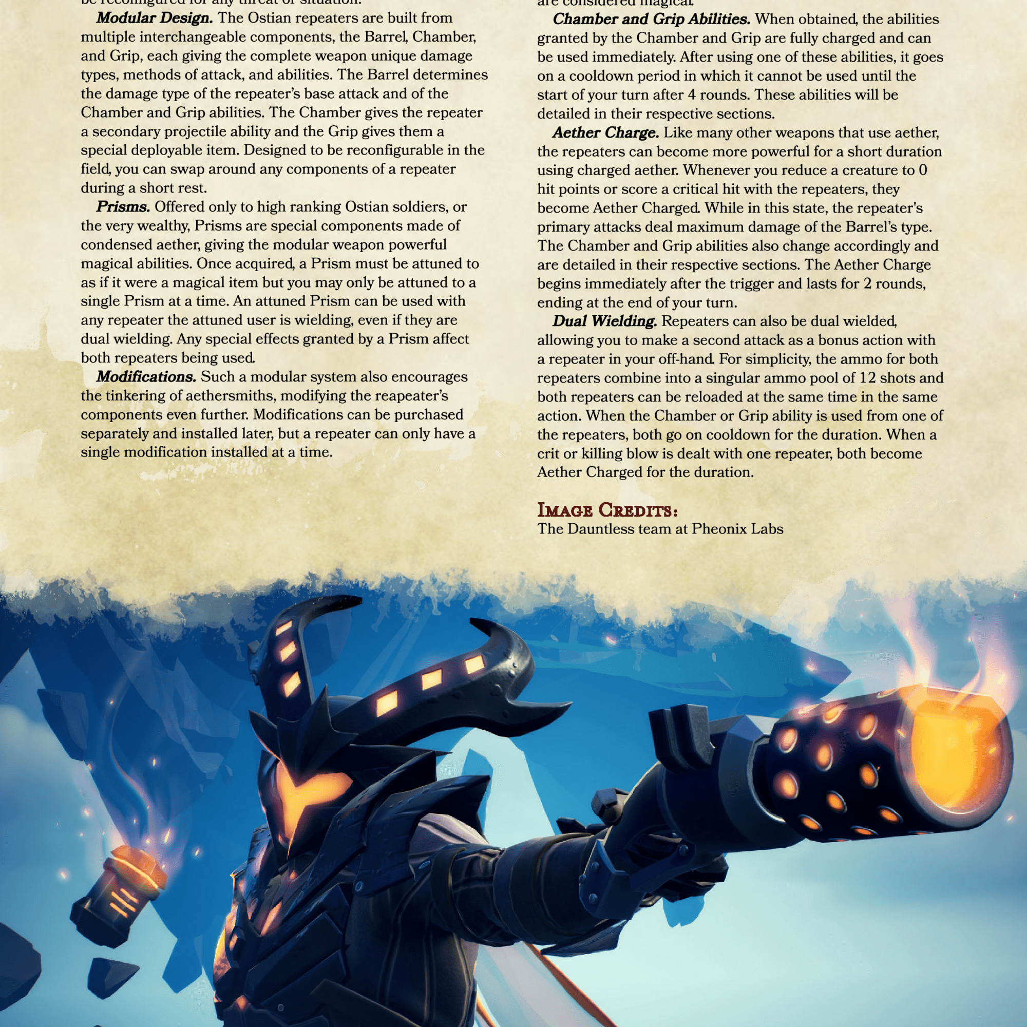 The Ostian Repeaters from Dauntless was one of my earlier brews and they were relatively new when I converted them. Since then, they’ve come a long way and changed quite a bit, warranting an update. So I’m glad to finally give them the update they so desperately needed, and I’ll likely be doing similar updates to the other Dauntless brews I’ve done before. I’m also going to be using them in campaign I’m in, doing a bit of playtesting defeating people with the power of the Raven Queen…and this gun I found.