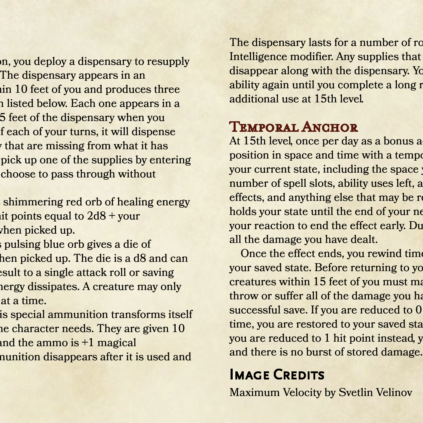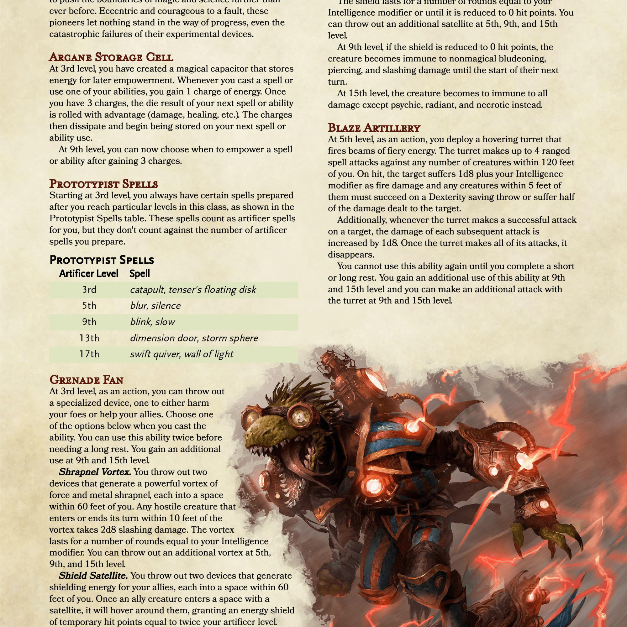 Finally got this thing finished! My first artificer subclass and another Warframe conversion, Protea this time, I really like how it turned out. I love Protea as a warframe and thought she would be perfect as an artificer. Lots of cool tools at her disposal, and she’s got the capacity for some really great damage at higher levels. And yes, I do plan on doing Vauban at some point whenever DE gets around to giving him the proper rework he deserves. Anyway, hope you guys have fun with this one!