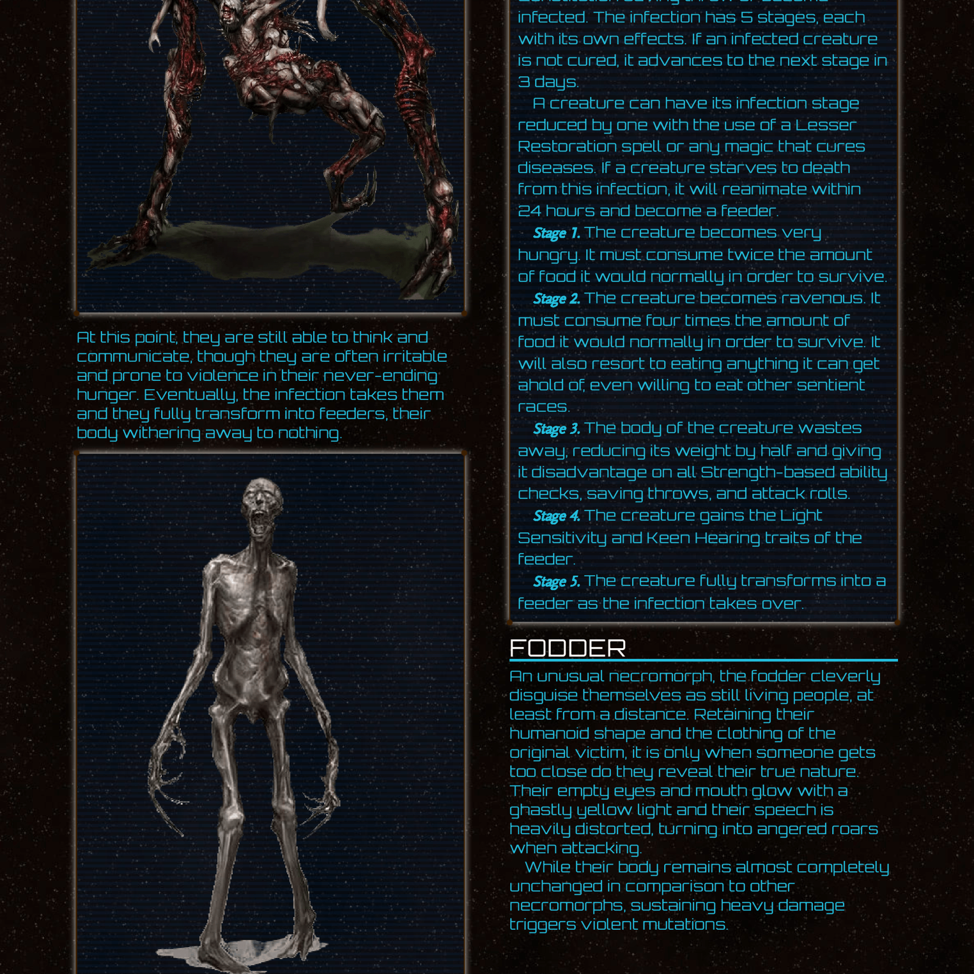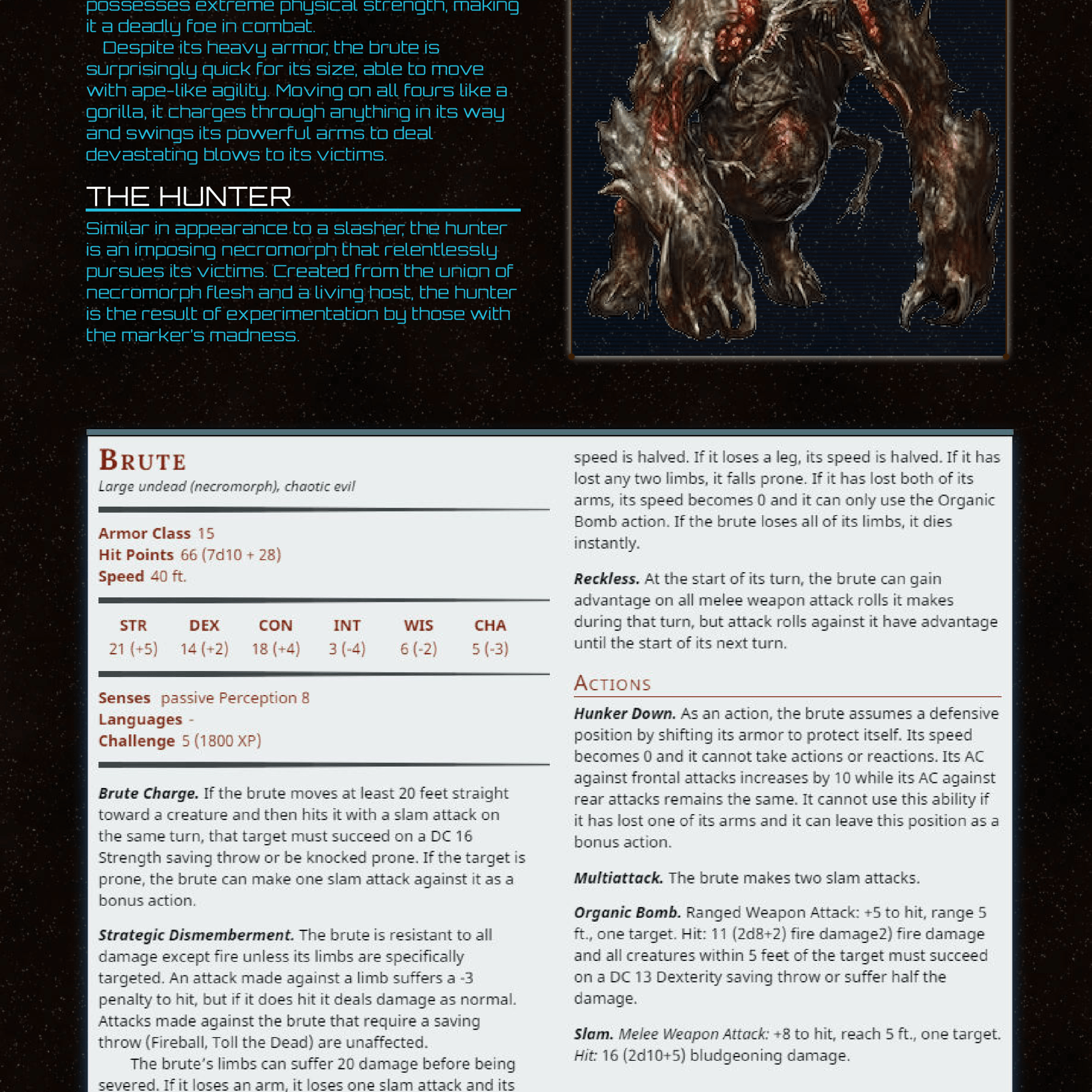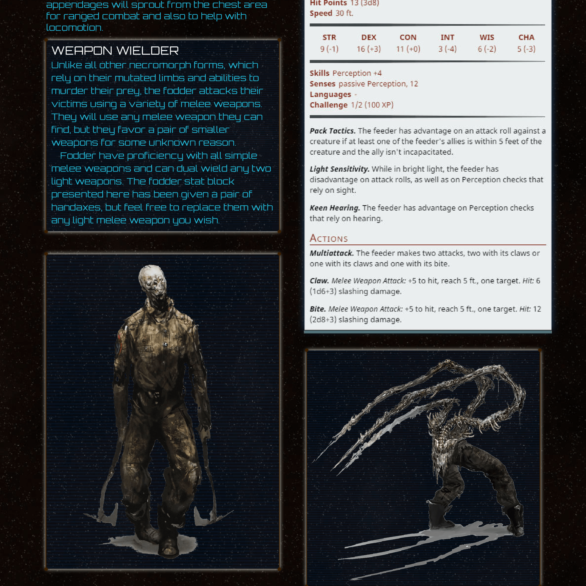 Something else to mention is that this is only the beginning. This project has laid a lot of the groundwork for the eventual full Dead Space supplement I want to do. More mechanics, better artwork, more monsters, items, the whole shebang. Hell, this isn’t even the end for this particular brew either! Because I had to rush it, I’m going to be taking the time after a while to start updating it and release those over time. A truly Bethesda move, but I really wanted to maintain my release record for the last 2 years.
