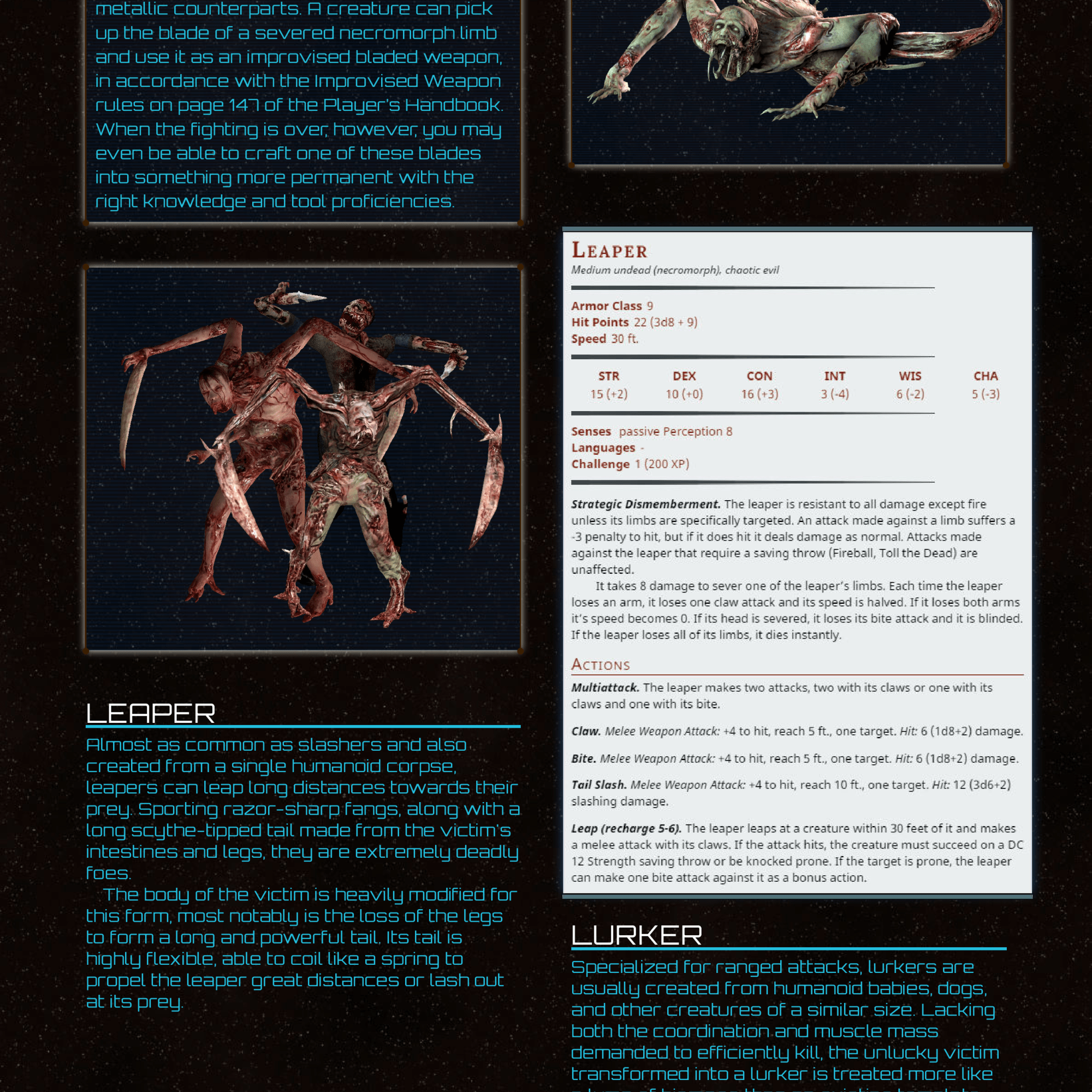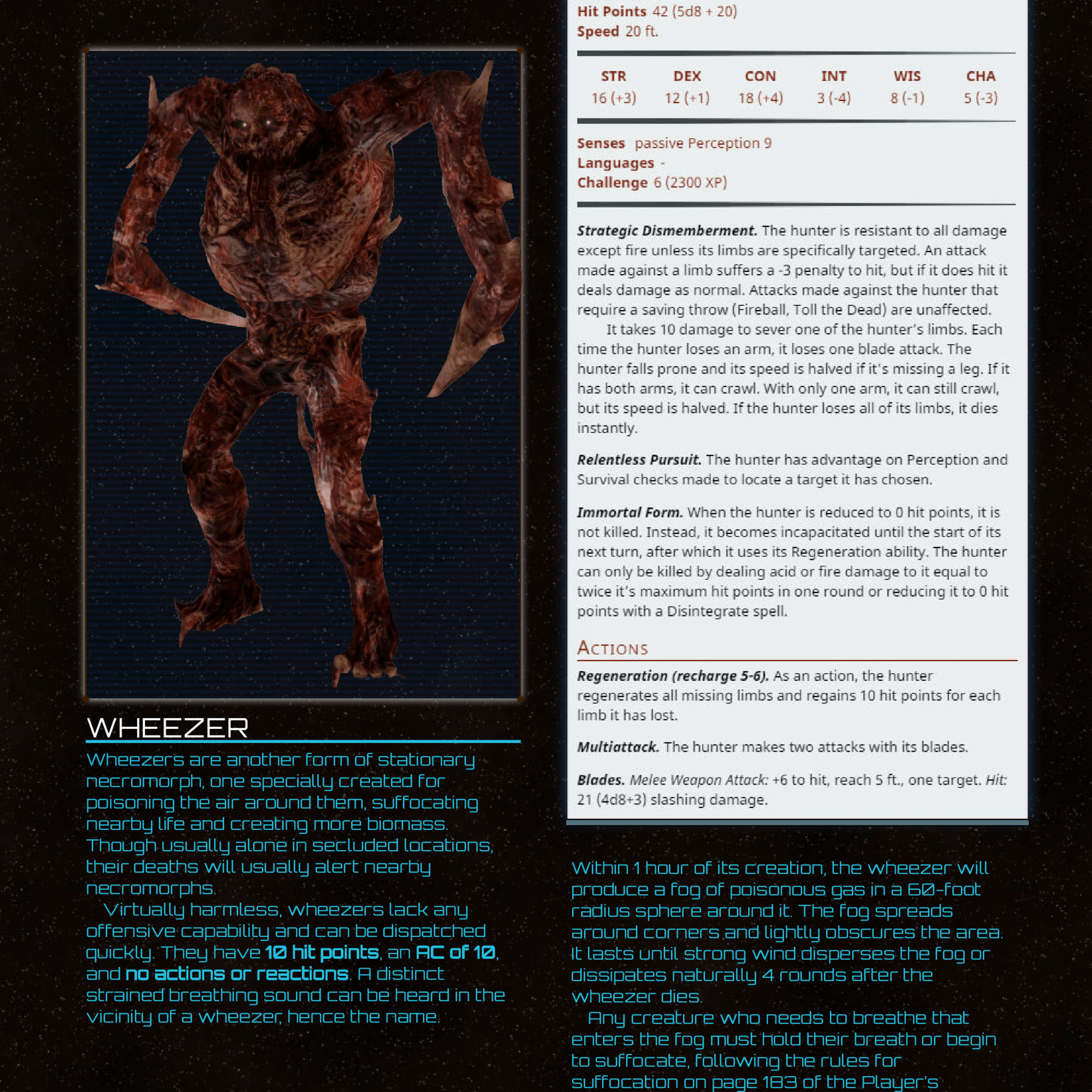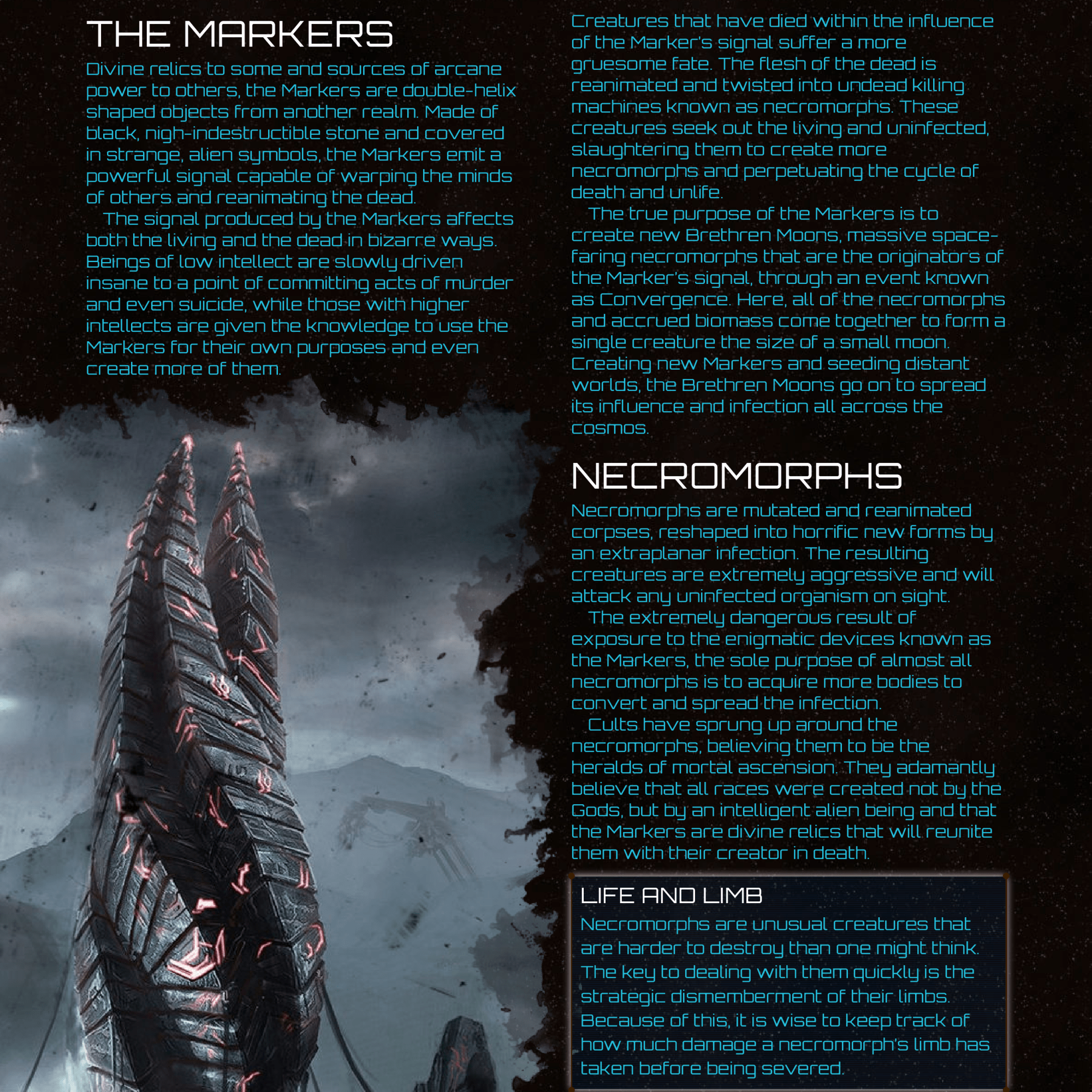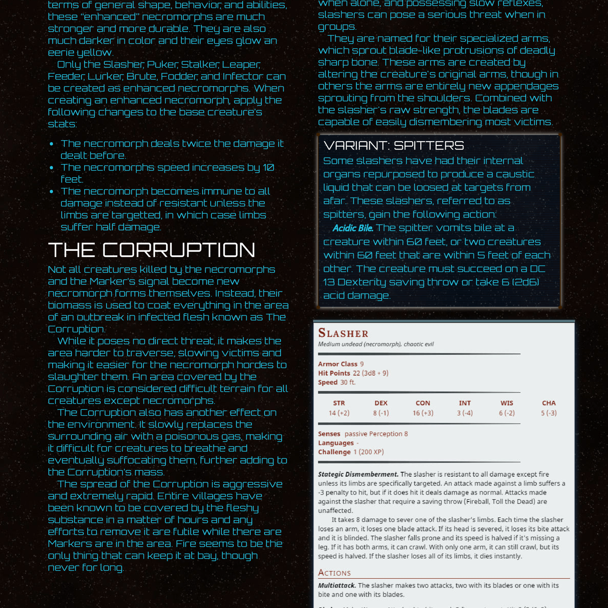 Something else to mention is that this is only the beginning. This project has laid a lot of the groundwork for the eventual full Dead Space supplement I want to do. More mechanics, better artwork, more monsters, items, the whole shebang. Hell, this isn’t even the end for this particular brew either! Because I had to rush it, I’m going to be taking the time after a while to start updating it and release those over time. A truly Bethesda move, but I really wanted to maintain my release record for the last 2 years.