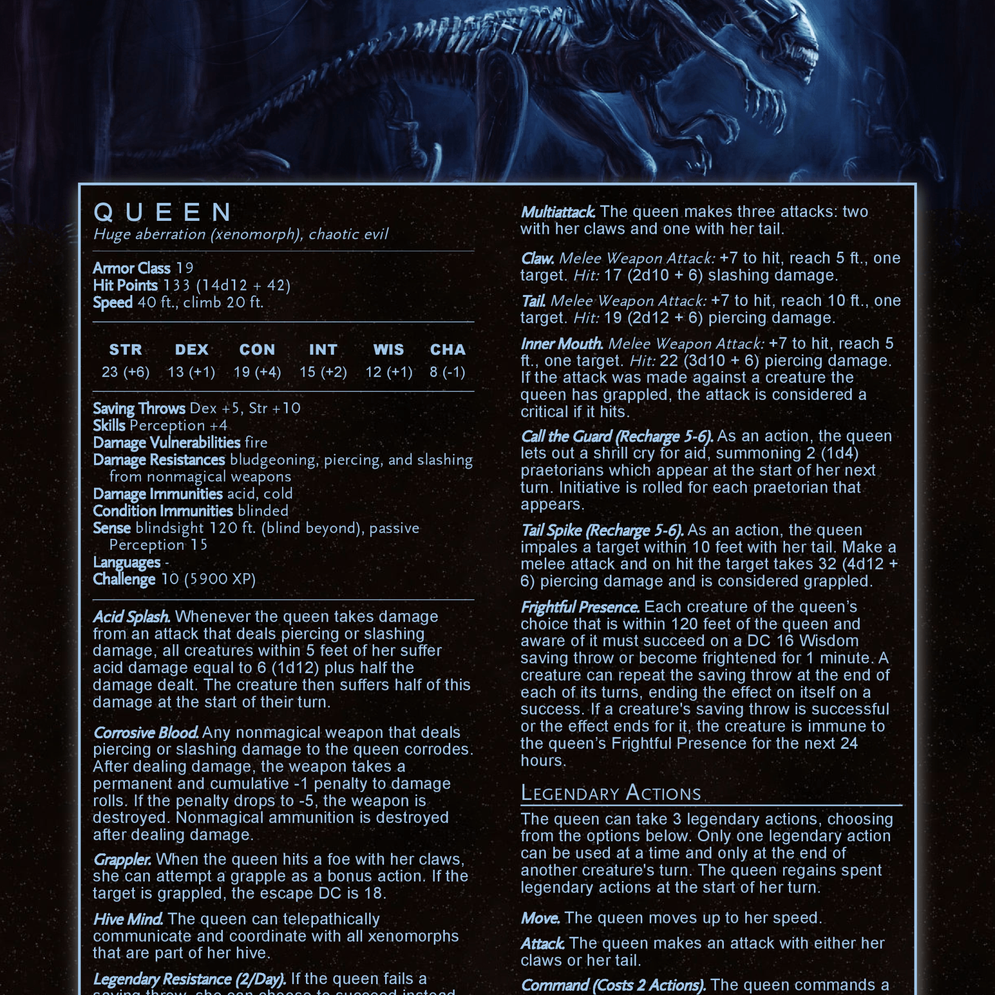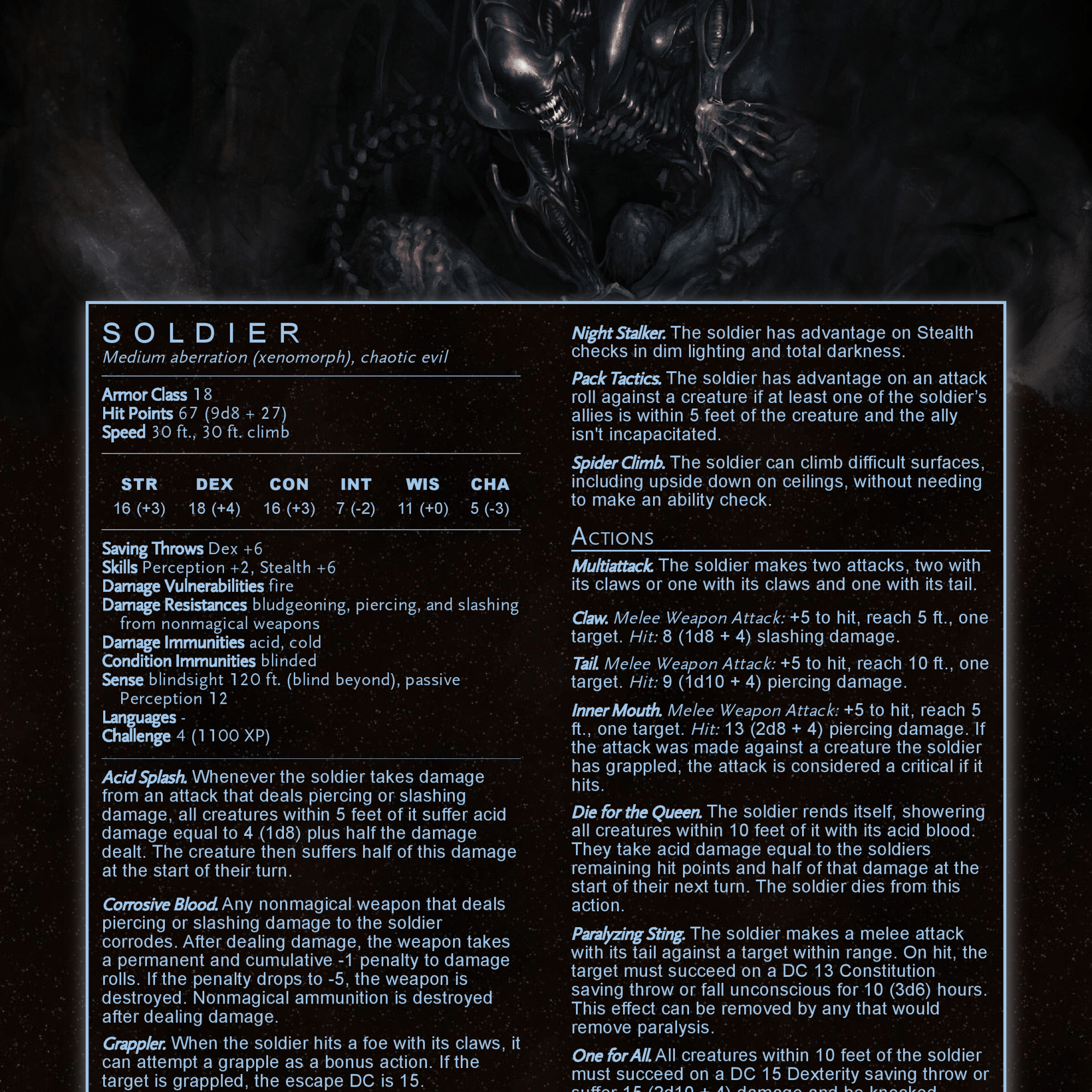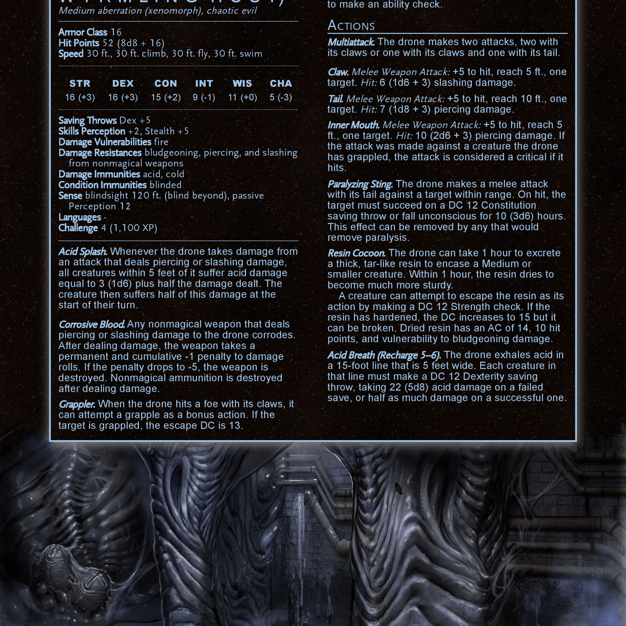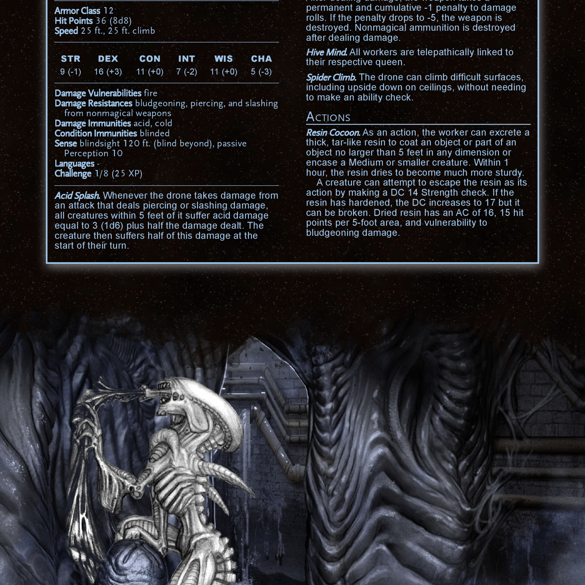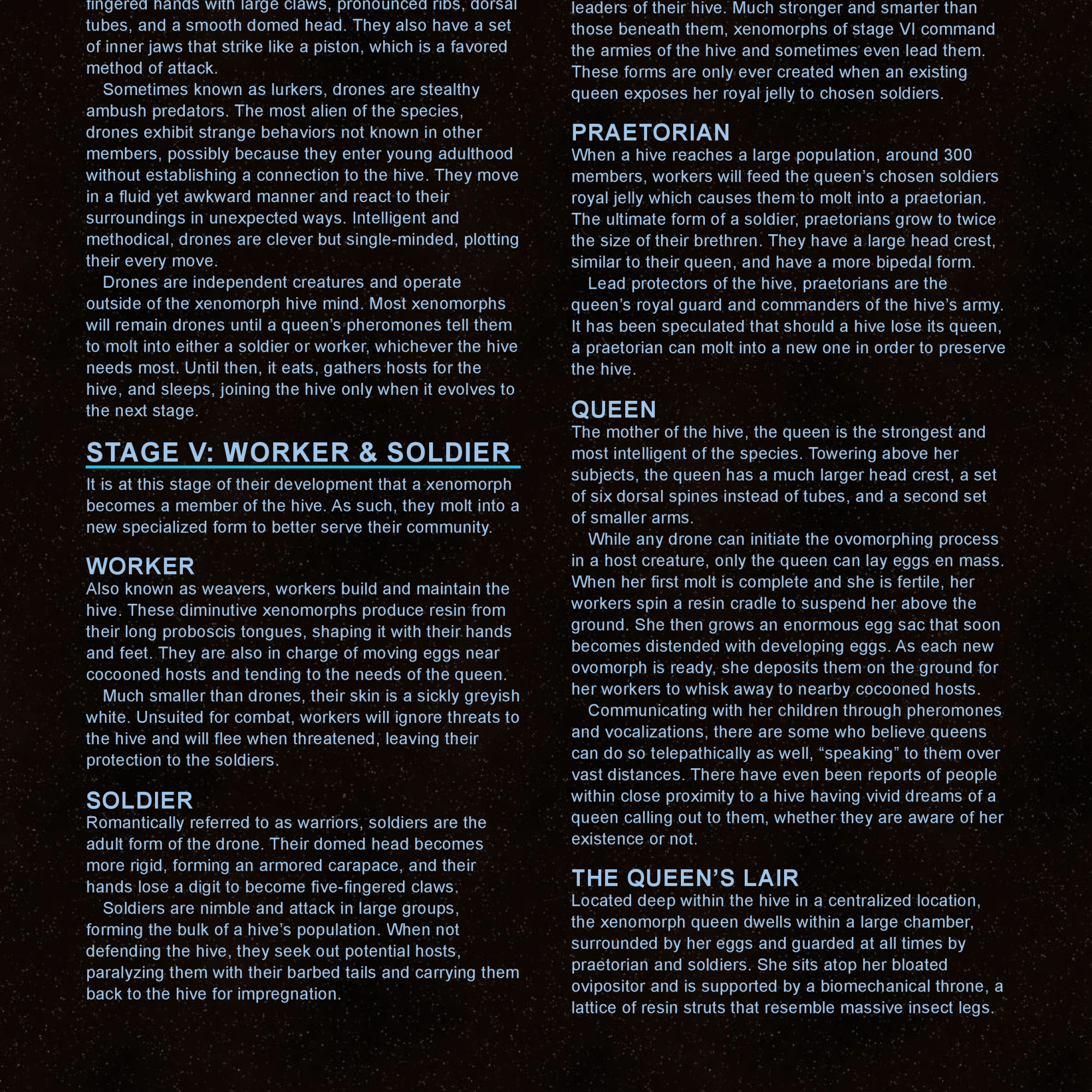 What proved to be an invaluable resource in this project was the official Alien RPG by Free League Publishing, which is an absolutely phenomenal RPG in its own right. It nails the aesthetic and tone of the series and does an amazing job of covering the lore, as well as loads of other aspects that are key to that sort of game. If you love the Alien series I HIGHLY recommend getting a copy.