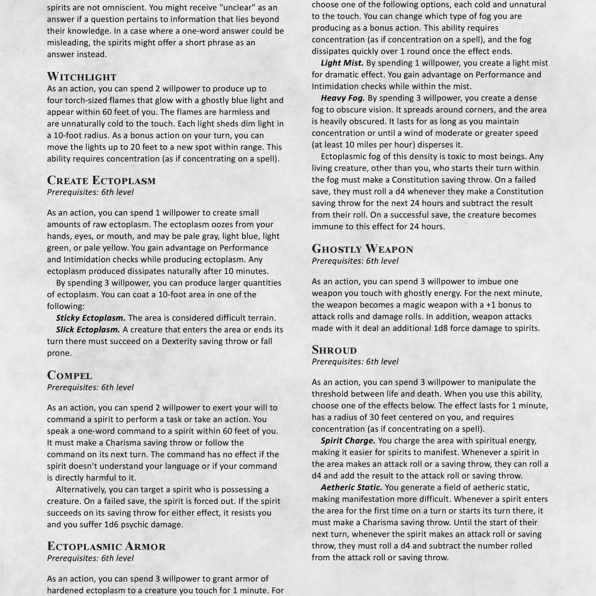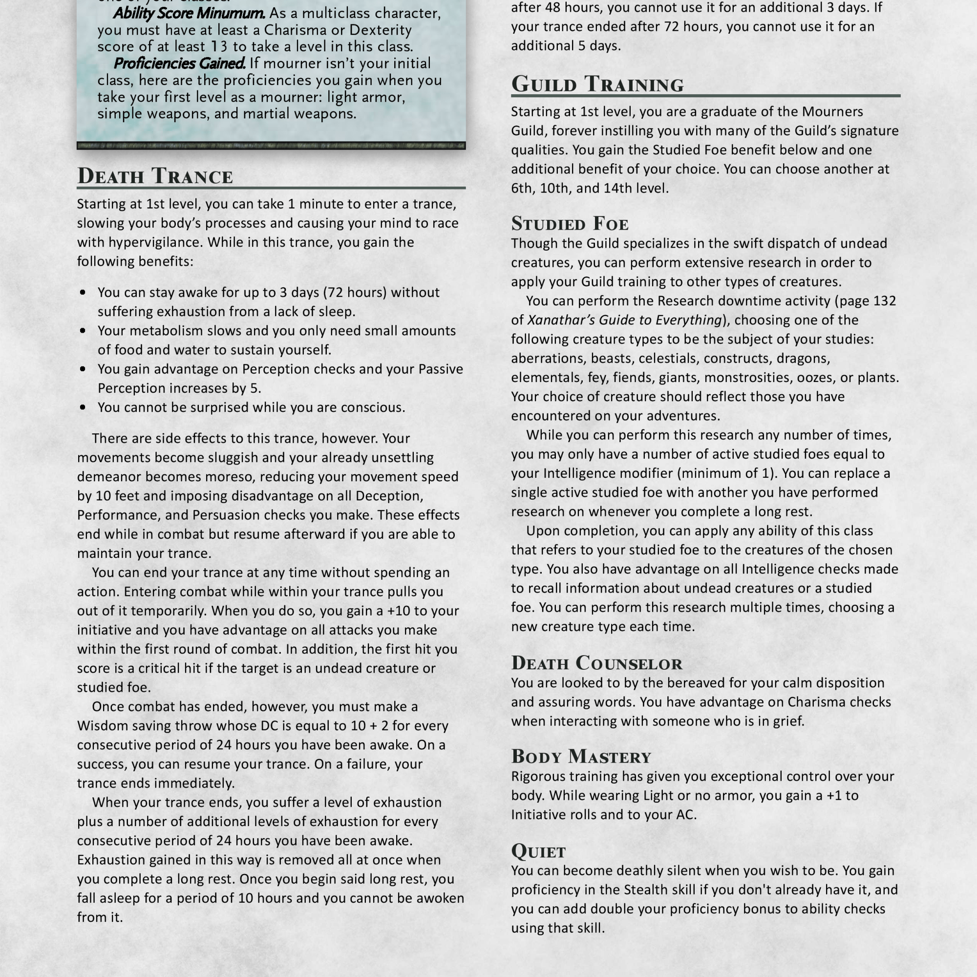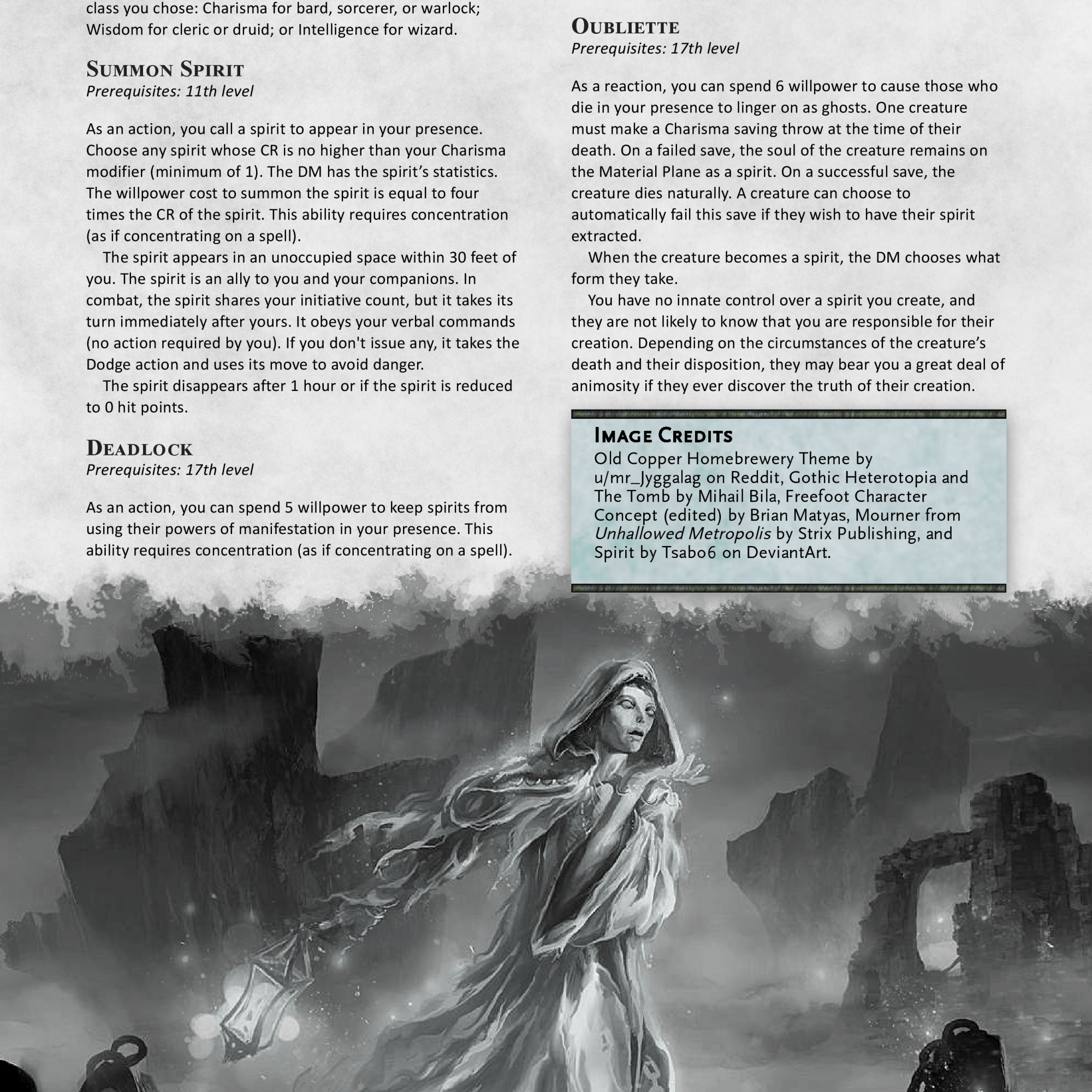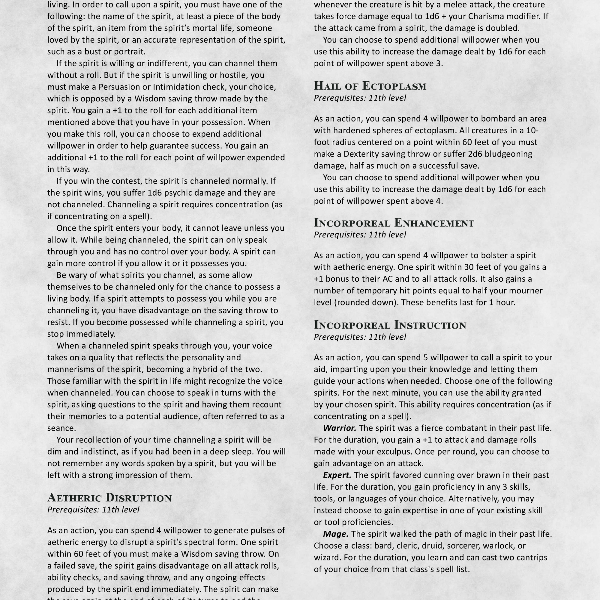 But after months of playtesting and heavy revisions, the class is now in a VASTLY better place. I’m so incredibly happy with this overhaul and look forward to playing it more in the future. Interesting thing of note, this was always meant to be a conversion but this rework has made it even closer to the Unhallowed version than before, both mechanically and in spirit.
