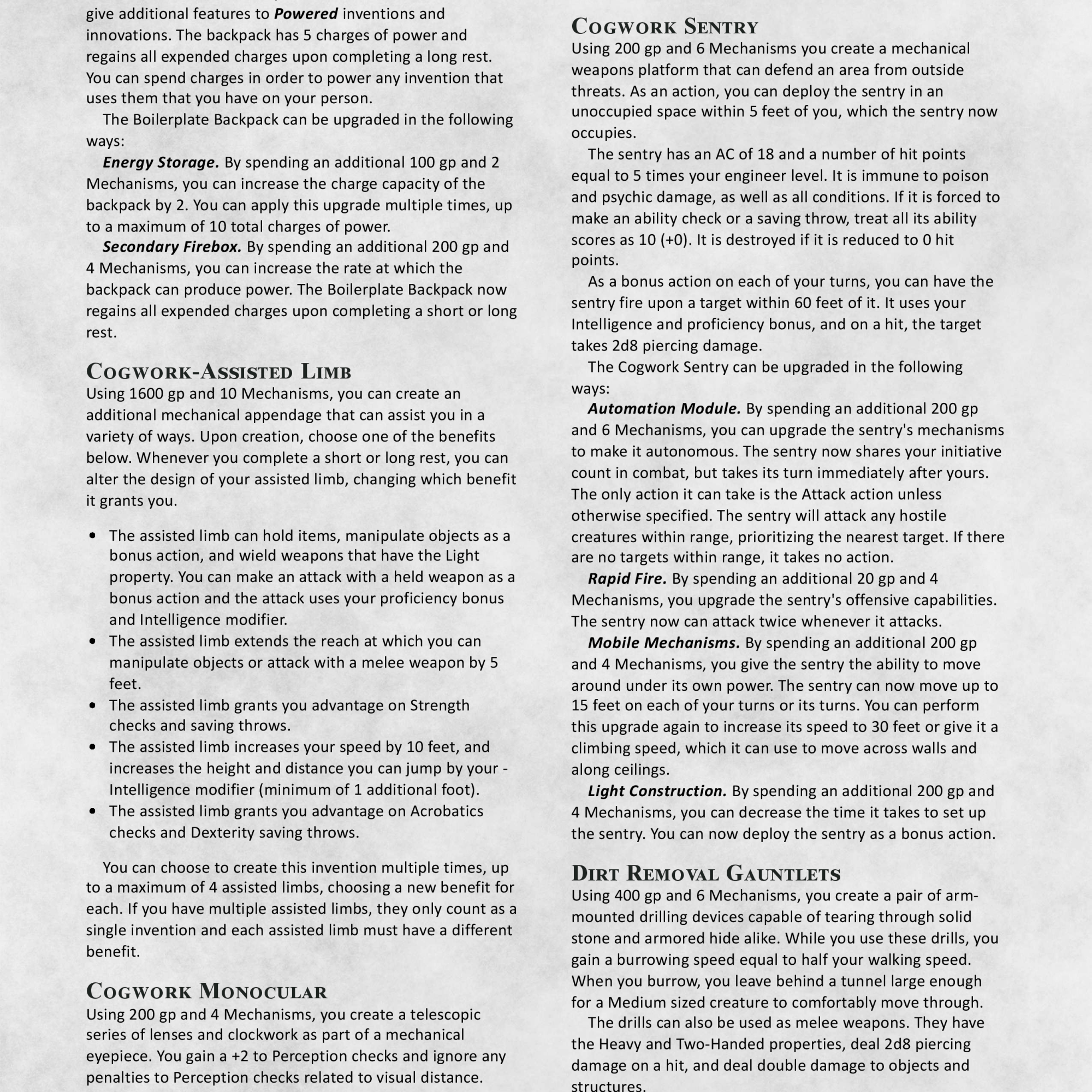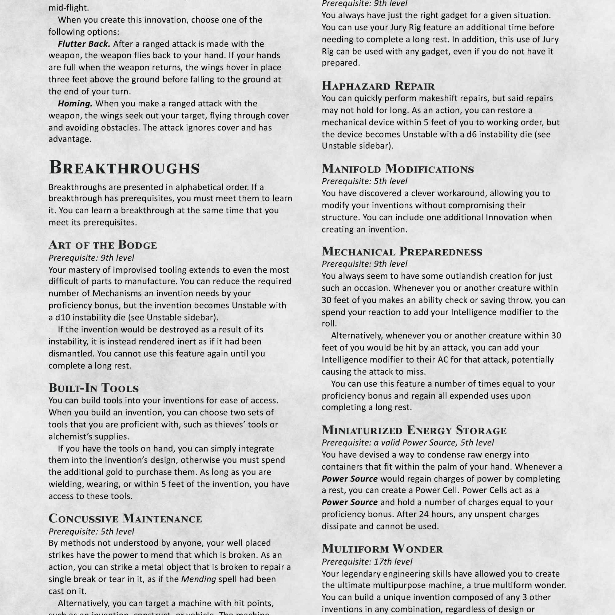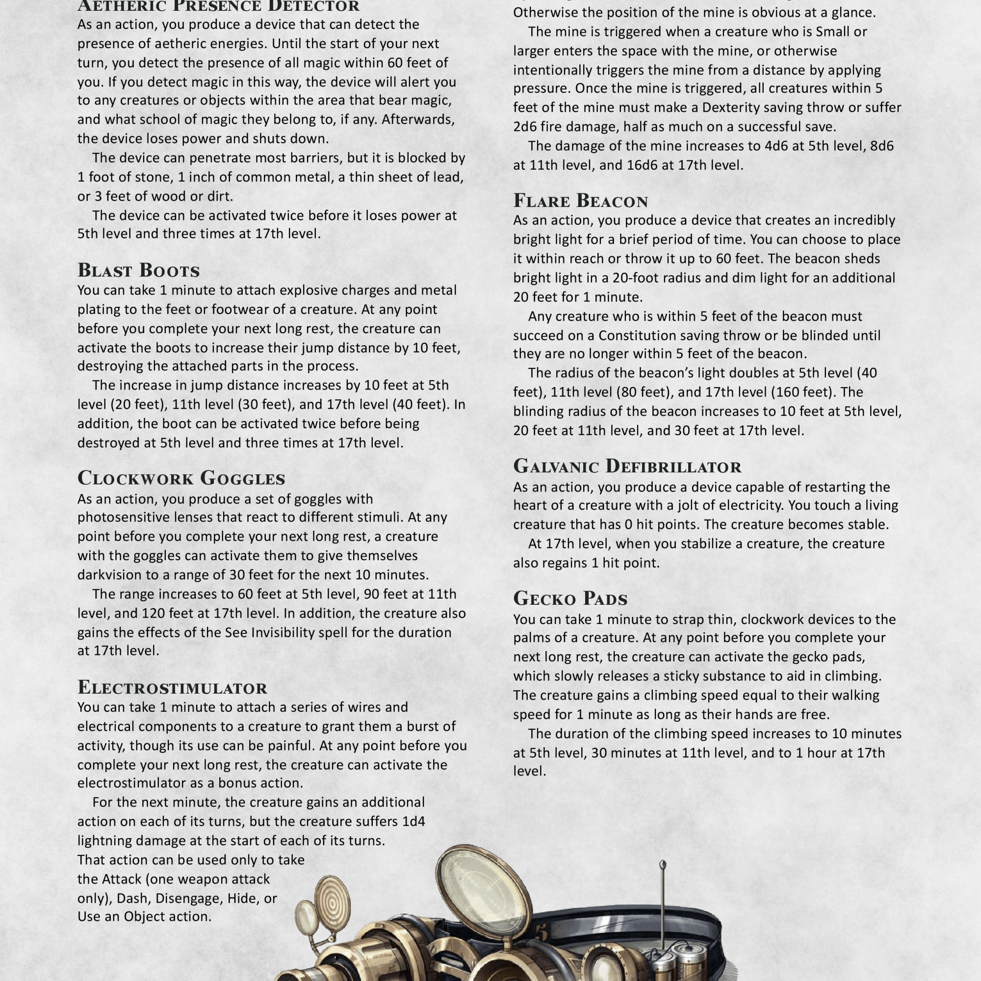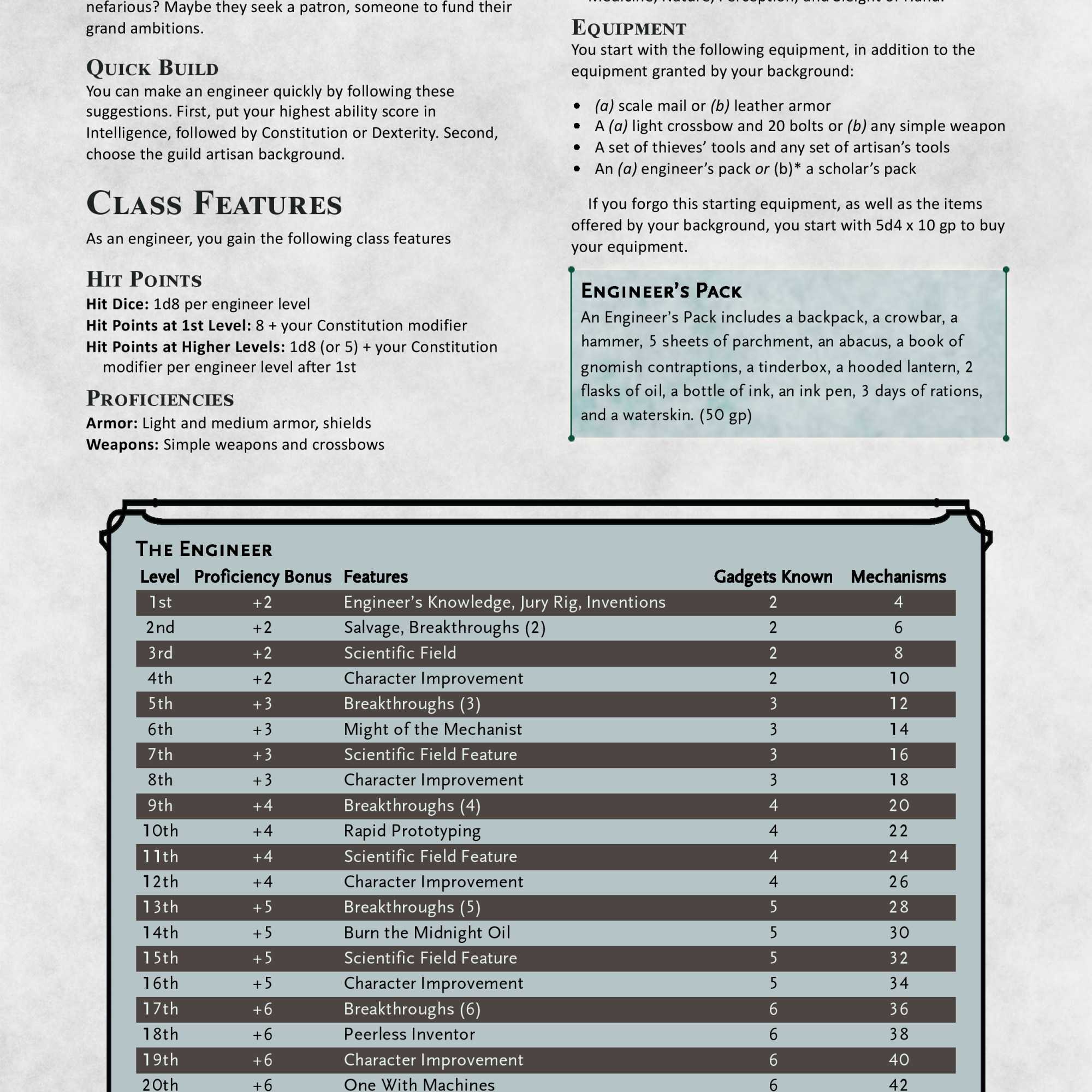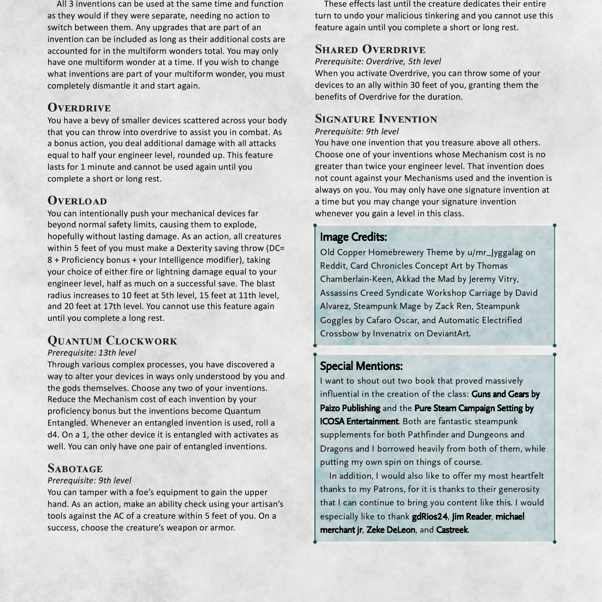 The class in question was a tinker, and inventor of things and wielder of all kinds of steampunk-y gadgets. I came to the table with a basic overview and the first few levels written out, and things were going great. I was having fun with it as I tinkered with the class and developed it further as we played, a bit like a certain claymation dog and a model train set. That was April of 2016.